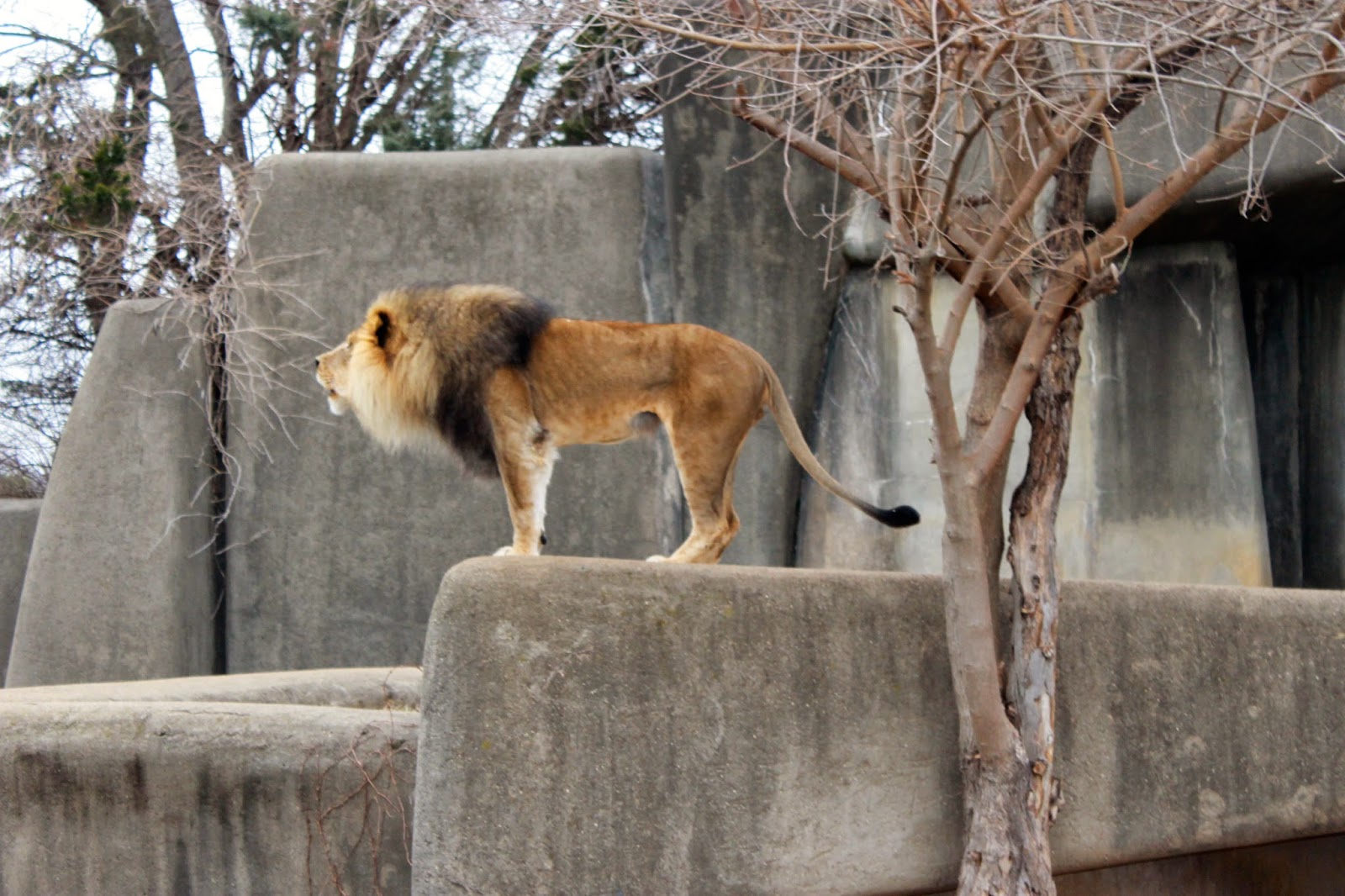 While we were admiring the elephants we all of the sudden heard the mighty roar of the LION! Wow, I've been to the zoo a hundred times and never hear the lion roar. Well, he kept roaring so we ran over (luckily it was very close) to see what was going on. The lion's exhibit is very close to the giraffe's exhibit and it seemed that the lion wanted those giraffes to know they would be lunch if it weren't for the fact that he couldn't get out. He was searching for a way to get over to them. Awesome to witness.